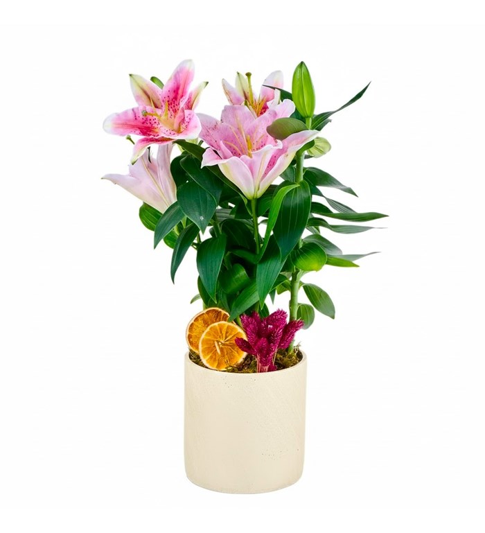 Pembe lilyum, zarafetin ve inceliğin en güzel çiçek dili halidir. Bu özel lilyumu, el yapımı seramik saksısında sunuyor; sıradan bir hediye olmanın çok ötesine geçen, uzun süre hatırlanacak bir jest yaratıyoruz.