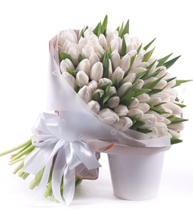Premium 100 Beyaz Lale Buketi – Zarafetin ve Saflığın Simgesi
